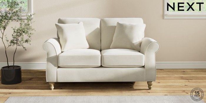 7.2.10 Ashford 2 Seater Small Sofa Luxe Chenille Oyster Low Turned - Light | Made Click here to use our website with more accessibility support, for example screen readers