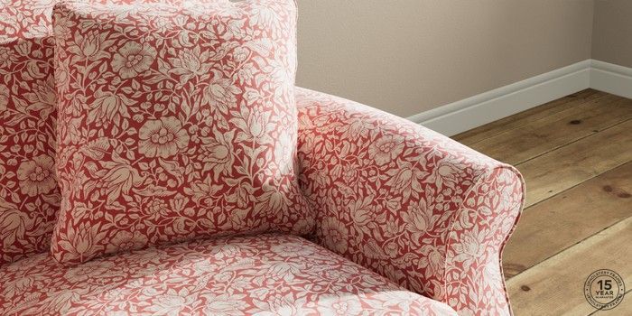 7.2.10 Ashford 2 Seater Small Sofa Mallow by Morris and Co Madder Coral Orange Castor - Light | Made Click here to use our website with more accessibility support, for example screen readers