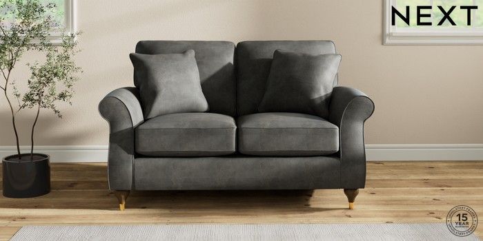 7.2.10 Ashford 2 Seater Small Sofa Monza Faux Leather Easy Clean Dark Grey Modern Turned Metal Cap - Mid | Made Click here to use our website with more accessibility support, for example screen readers