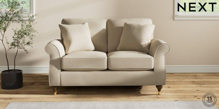 7.2.10 Ashford 2 Seater Small Sofa Natural Mix Light Natural Modern Turned Metal Cap - Mid | Made Click here to use our website with more accessibility support, for example screen readers