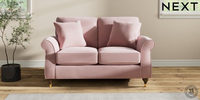 7.2.10 Ashford 2 Seater Small Sofa Natural Mix Light Rose Pink Modern Turned Metal Cap - Mid | Made Click here to use our website with more accessibility support, for example screen readers