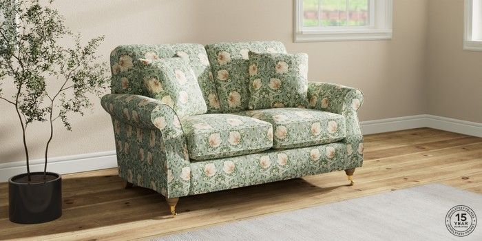 7.2.10 Ashford 2 Seater Small Sofa Pimpernel by Morris and Co Bayleaf Green Castor - Light | Made Click here to use our website with more accessibility support, for example screen readers