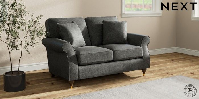 7.2.10 Ashford 2 Seater Small Sofa Plush Chenille Dark Grey Modern Turned Metal Cap - Mid | Made Click here to use our website with more accessibility support, for example screen readers