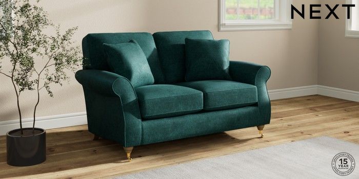 7.2.10 Ashford 2 Seater Small Sofa Plush Chenille Dark Teal Green Castor - Light | Made Click here to use our website with more accessibility support, for example screen readers