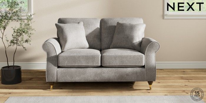 7.2.10 Ashford 2 Seater Small Sofa Plush Chenille Light Grey Castor - Mid | Made Click here to use our website with more accessibility support, for example screen readers