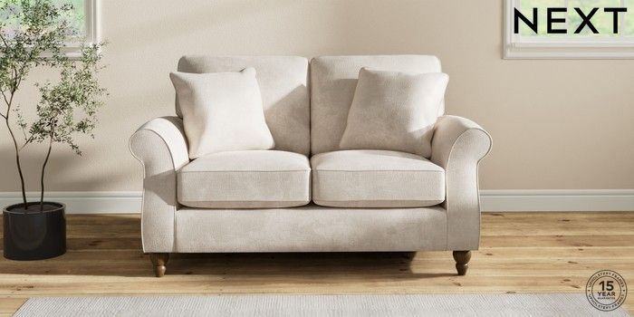 7.2.10 Ashford 2 Seater Small Sofa Plush Chenille Oyster Low Turned - Mid | Made Click here to use our website with more accessibility support, for example screen readers