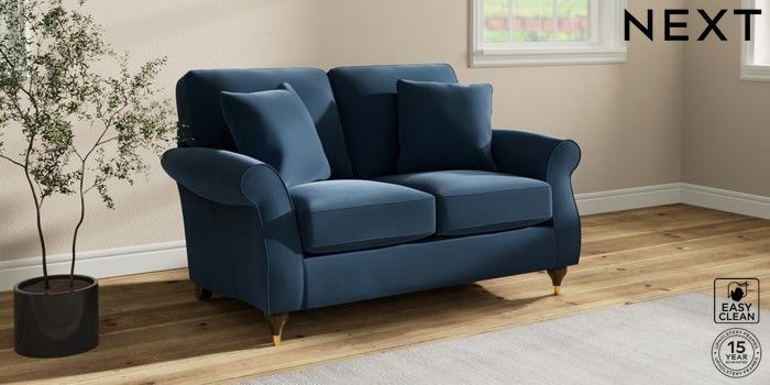 7.2.10 Ashford 2 Seater Small Sofa Plush Velvet Easy Clean Airforce Blue Modern Turned Metal Cap - Mid | Made Click here to use our website with more accessibility support, for example screen readers