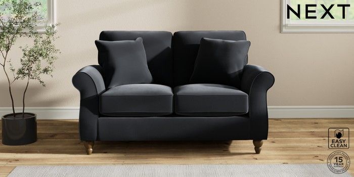 7.2.10 Ashford 2 Seater Small Sofa Plush Velvet Easy Clean Charcoal Grey Low Turned - Mid | Made Click here to use our website with more accessibility support, for example screen readers