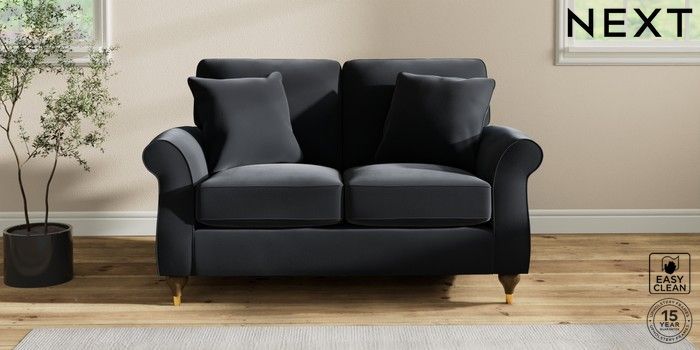 7.2.10 Ashford 2 Seater Small Sofa Plush Velvet Easy Clean Charcoal Grey Modern Turned Metal Cap - Mid | Made Click here to use our website with more accessibility support, for example screen readers
