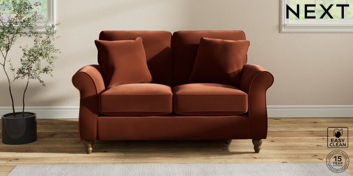 7.2.10 Ashford 2 Seater Small Sofa Plush Velvet Easy Clean Ginger Orange Low Turned - Mid | Made Click here to use our website with more accessibility support, for example screen readers