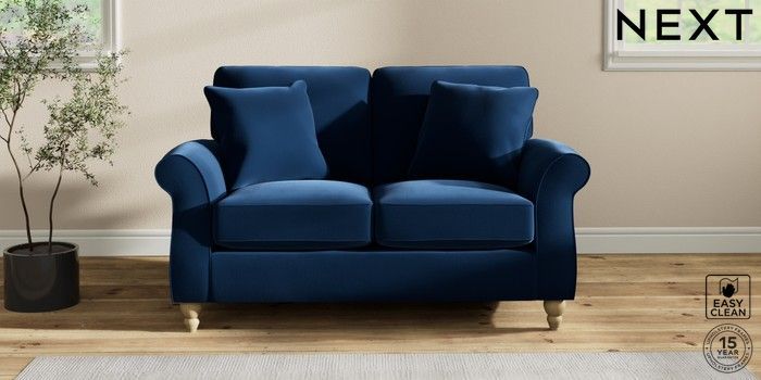 7.2.10 Ashford 2 Seater Small Sofa Plush Velvet Easy Clean Navy Blue Low Turned - Light | Made Click here to use our website with more accessibility support, for example screen readers