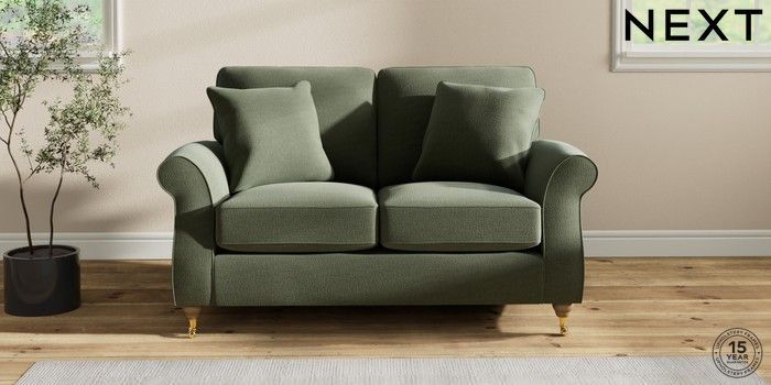 7.2.10 Ashford 2 Seater Small Sofa Relaxed Linen Look Dark Green Castor - Light | Made Click here to use our website with more accessibility support, for example screen readers