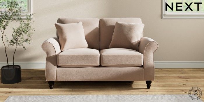 7.2.10 Ashford 2 Seater Small Sofa Relaxed Linen Look Mid Natural Low Turned - Dark | Made Click here to use our website with more accessibility support, for example screen readers