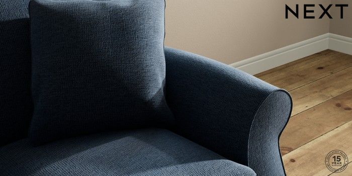 7.2.10 Ashford 2 Seater Small Sofa Ripple Chenille Dark Blue Modern Turned Metal Cap - Mid | Made Click here to use our website with more accessibility support, for example screen readers