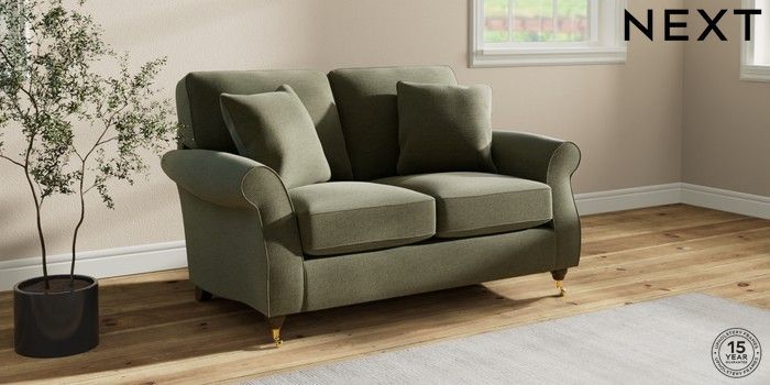 7.2.10 Ashford 2 Seater Small Sofa Ripple Chenille Mid Moss Green Castor - Mid | Made Click here to use our website with more accessibility support, for example screen readers