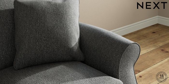 7.2.10 Ashford 2 Seater Small Sofa Tweedy Chenille Dark Grey Modern Turned Metal Cap - Mid | Made Click here to use our website with more accessibility support, for example screen readers