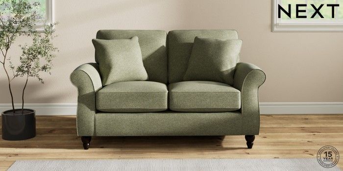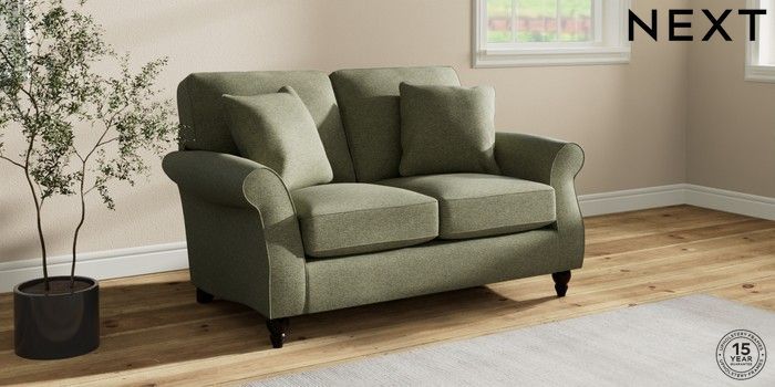 7.2.10 Ashford 2 Seater Small Sofa Tweedy Chenille Mid Moss Green Low Turned - Dark | Made Click here to use our website with more accessibility support, for example screen readers