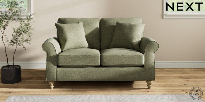 7.2.10 Ashford 2 Seater Small Sofa Tweedy Chenille Mid Moss Green Low Turned - Light | Made Click here to use our website with more accessibility support, for example screen readers