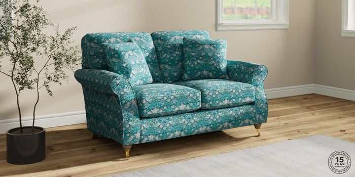 7.2.10 Ashford 2 Seater Small Sofa WM Strawberry Thief by Clarke and Clarke Teal Castor - Light | Made Click here to use our website with more accessibility support, for example screen readers