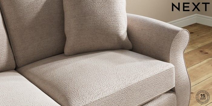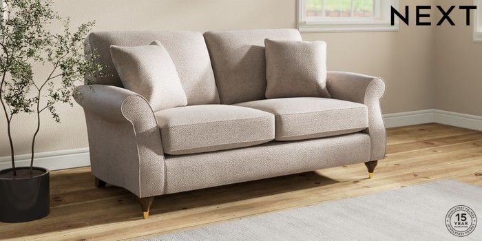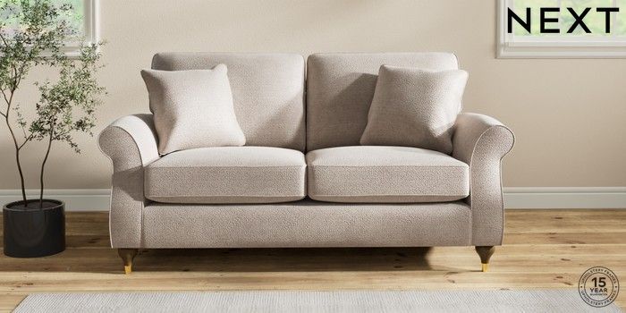 7.2.10 Ashford 2 Seater Sofa Boucle Chenille Light Natural Modern Turned Metal Cap - Mid | Made Click here to use our website with more accessibility support, for example screen readers