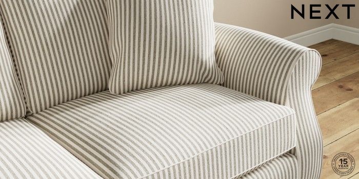 7.2.10 Ashford 2 Seater Sofa Chenille Stripe Moss Green Modern Turned Metal Cap - Mid | Made Click here to use our website with more accessibility support, for example screen readers