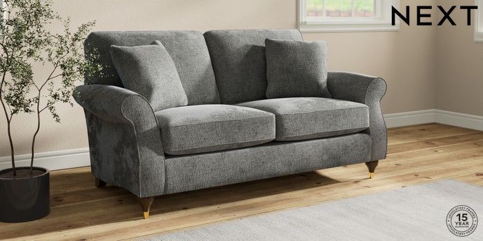 7.2.10 Ashford 2 Seater Sofa Chunky Chenille Dark Grey Modern Turned Metal Cap - Mid | Made Click here to use our website with more accessibility support, for example screen readers