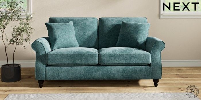 7.2.10 Ashford 2 Seater Sofa Chunky Chenille Mid Teal Green Low Turned - Dark | Made Click here to use our website with more accessibility support, for example screen readers