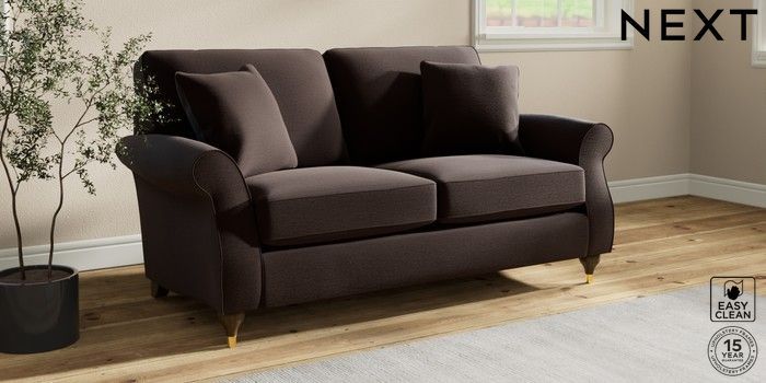 7.2.10 Ashford 2 Seater Sofa Fine Chenille Easy Clean Chocolate Brown Modern Turned Metal Cap - Mid | Made Click here to use our website with more accessibility support, for example screen readers