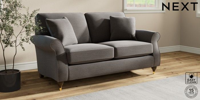 7.2.10 Ashford 2 Seater Sofa Fine Chenille Easy Clean Dark Smoke Grey Modern Turned Metal Cap - Mid | Made Click here to use our website with more accessibility support, for example screen readers