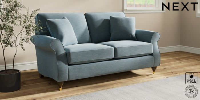 7.2.10 Ashford 2 Seater Sofa Fine Chenille Easy Clean Mid Blue Modern Turned Metal Cap - Mid | Made Click here to use our website with more accessibility support, for example screen readers