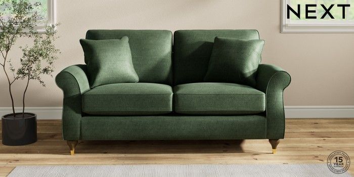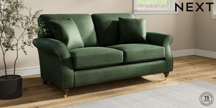 7.2.10 Ashford 2 Seater Sofa Luxe Chenille Dark Green Modern Turned Metal Cap - Mid | Made Click here to use our website with more accessibility support, for example screen readers