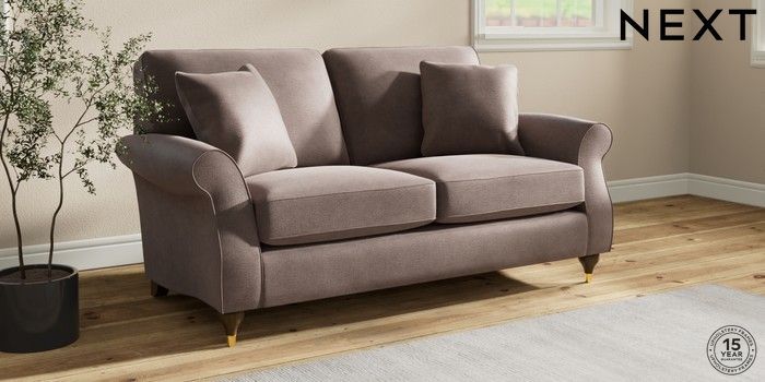 7.2.10 Ashford 2 Seater Sofa Luxe Chenille Mink Brown Modern Turned Metal Cap - Mid | Made Click here to use our website with more accessibility support, for example screen readers
