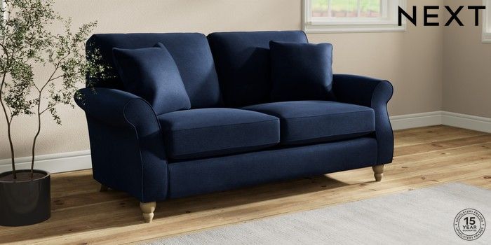7.2.10 Ashford 2 Seater Sofa Luxe Chenille Navy Blue Low Turned - Light | Made Click here to use our website with more accessibility support, for example screen readers