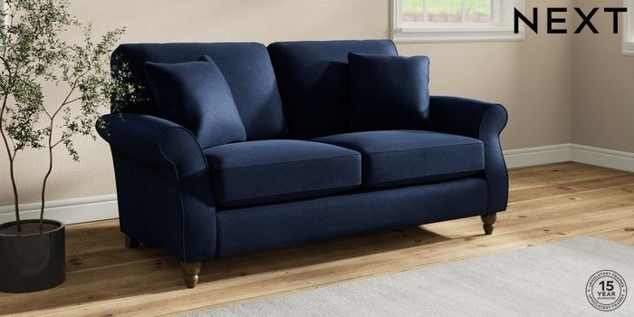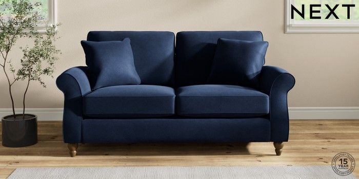 7.2.10 Ashford 2 Seater Sofa Luxe Chenille Navy Blue Low Turned - Mid | Made Click here to use our website with more accessibility support, for example screen readers