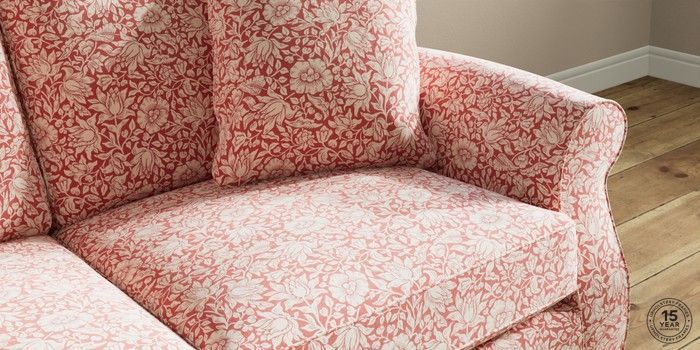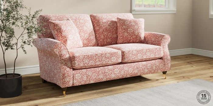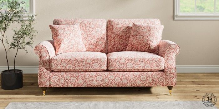 7.2.10 Ashford 2 Seater Sofa Mallow by Morris and Co Madder Coral Orange Castor - Mid | Made Click here to use our website with more accessibility support, for example screen readers