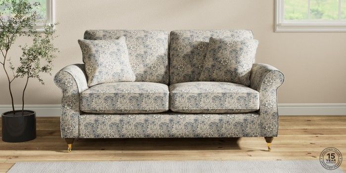 7.2.10 Ashford 2 Seater Sofa Marigold by Morris and Co Indigo Blue Castor - Mid | Made Click here to use our website with more accessibility support, for example screen readers
