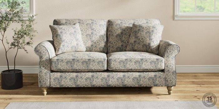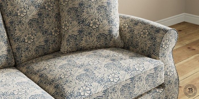 7.2.10 Ashford 2 Seater Sofa Marigold by Morris and Co Indigo Blue Low Turned - Light | Made Click here to use our website with more accessibility support, for example screen readers