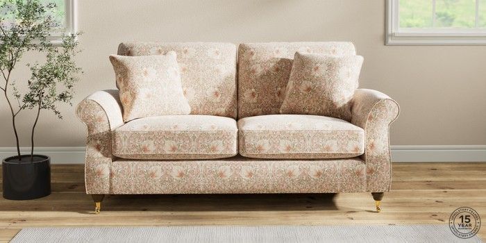 7.2.10 Ashford 2 Seater Sofa Pimpernel by Morris and Co Cochineal Pink Castor - Mid | Made Click here to use our website with more accessibility support, for example screen readers