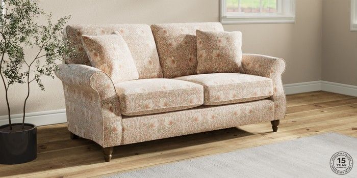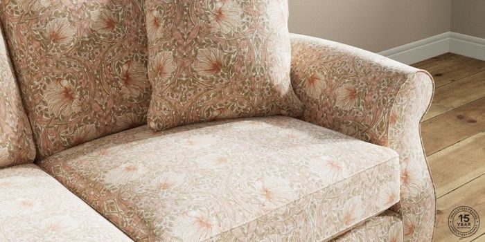 7.2.10 Ashford 2 Seater Sofa Pimpernel by Morris and Co Cochineal Pink Low Turned - Mid | Made Click here to use our website with more accessibility support, for example screen readers