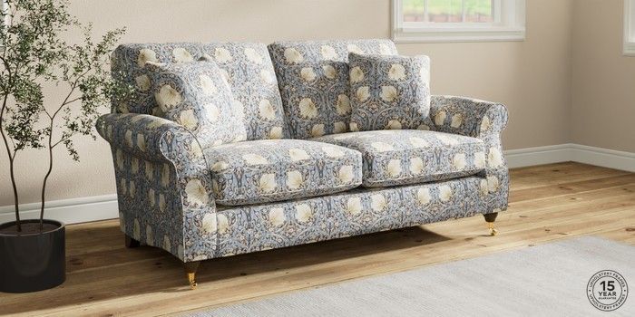 7.2.10 Ashford 2 Seater Sofa Pimpernel by Morris and Co Indigo Blue Castor - Mid | Made Click here to use our website with more accessibility support, for example screen readers