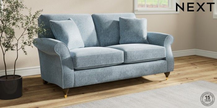 7.2.10 Ashford 2 Seater Sofa Plush Chenille Light Blue Modern Turned Metal Cap - Mid | Made Click here to use our website with more accessibility support, for example screen readers