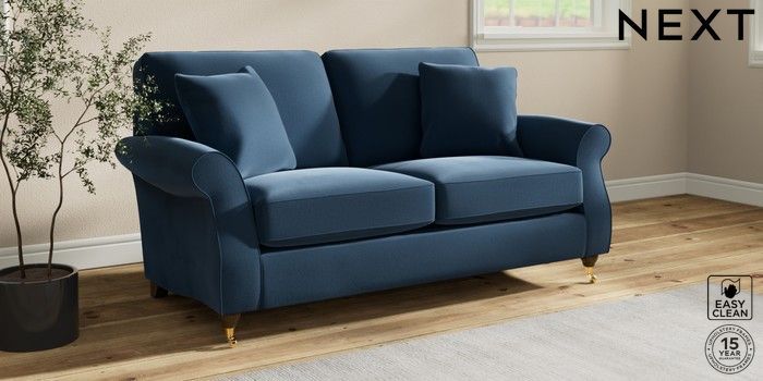 7.2.10 Ashford 2 Seater Sofa Plush Velvet Easy Clean Airforce Blue Castor - Mid | Made Click here to use our website with more accessibility support, for example screen readers