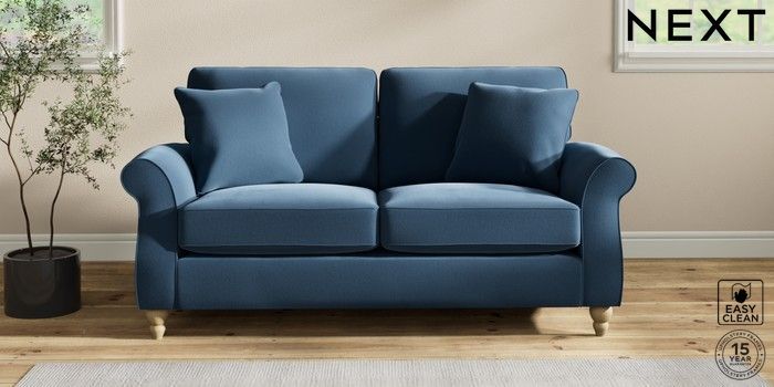 7.2.10 Ashford 2 Seater Sofa Plush Velvet Easy Clean Airforce Blue Low Turned - Light | Made Click here to use our website with more accessibility support, for example screen readers