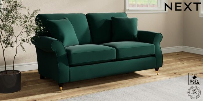 7.2.10 Ashford 2 Seater Sofa Plush Velvet Easy Clean Bottle Green Castor - Dark | Made Click here to use our website with more accessibility support, for example screen readers