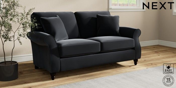 7.2.10 Ashford 2 Seater Sofa Plush Velvet Easy Clean Charcoal Grey Low Turned - Dark | Made Click here to use our website with more accessibility support, for example screen readers