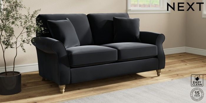 7.2.10 Ashford 2 Seater Sofa Plush Velvet Easy Clean Charcoal Grey Low Turned - Light | Made Click here to use our website with more accessibility support, for example screen readers