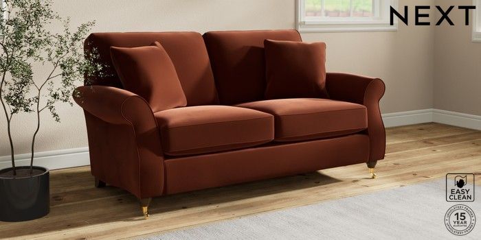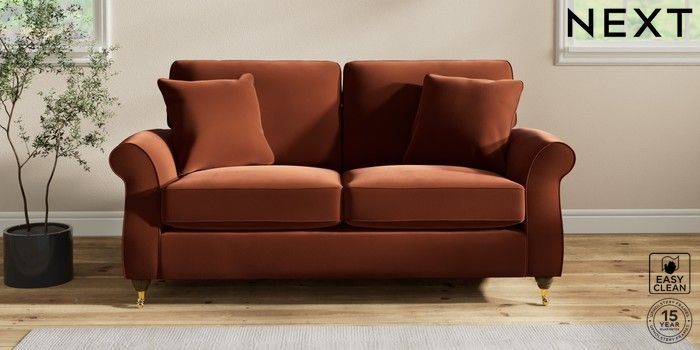 7.2.10 Ashford 2 Seater Sofa Plush Velvet Easy Clean Ginger Orange Castor - Mid | Made Click here to use our website with more accessibility support, for example screen readers