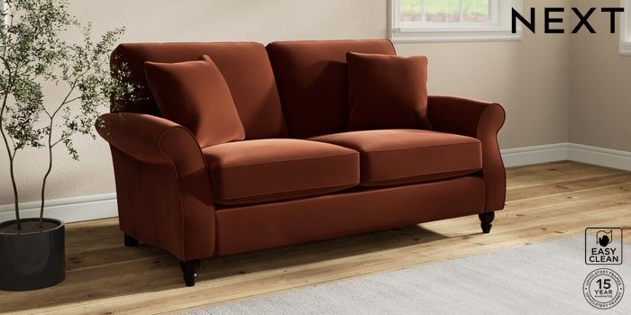 7.2.10 Ashford 2 Seater Sofa Plush Velvet Easy Clean Ginger Orange Low Turned - Dark | Made Click here to use our website with more accessibility support, for example screen readers