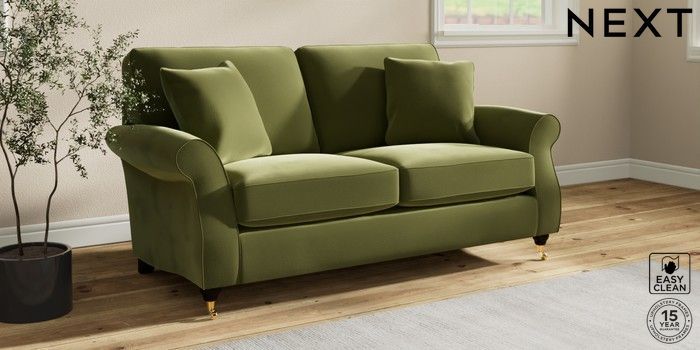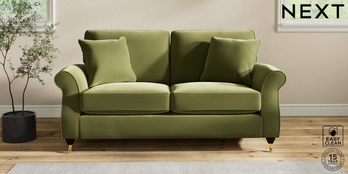7.2.10 Ashford 2 Seater Sofa Plush Velvet Easy Clean Mid Olive Green Castor - Dark | Made Click here to use our website with more accessibility support, for example screen readers