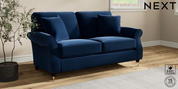 7.2.10 Ashford 2 Seater Sofa Plush Velvet Easy Clean Navy Blue Castor - Dark | Made Click here to use our website with more accessibility support, for example screen readers